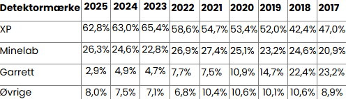 Det viser flere brugerundersøgelser fra Facebookgruppen Detektor Danmark, som er Danmarks største fællesskab for metaldetektorfolk.
